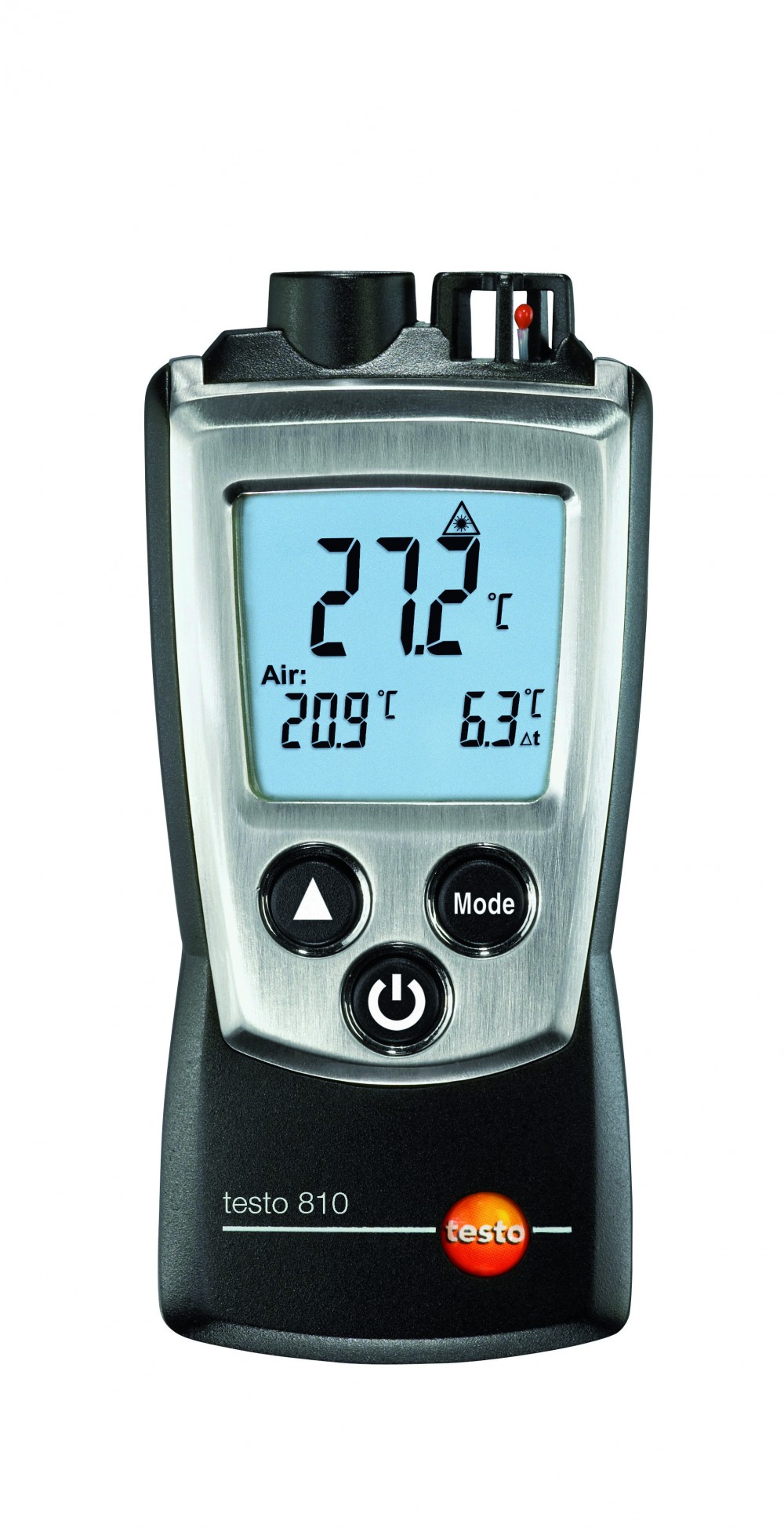 Testo 810 er en mini infrarød temperaturmåler. For deg som har bruk for en liten, men effektiv løsning av luft og overflate temperatur er Testo 810 en god løsning. Du kan utføre flere målepunkter på en hurtig og effektiv måte. Enkelt å utføre oppgaver på varme områder og utilgjengelige objekter. Instrumentet får lett plass i en lomme og er på størrelse med en mobiltelefon.