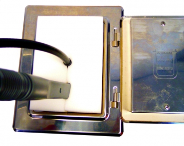 Praktisk tetting i skumgummi for sot- feieluke ved eks fresing. Hull i senter og delvis gjennomskåret for letter tilgang med verktøy